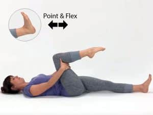 De oefening wordt in twee delen uitgevoerd: eerst supine foot circles en daarna point/flexes.