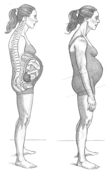 Door de groeiende buik verandert het zwaartepunt. Dit kan bijdragen aan klachten als lage rugpijn, pijn aan het SI gewricht en ischias. De ervaring leert echter dat hoe functioneler het lichaam is en hoe beter de houding, des de kleiner de kans op klachten is. Bepalend hiervoor is de positie van de gewrichten ten opzichte van elkaar.